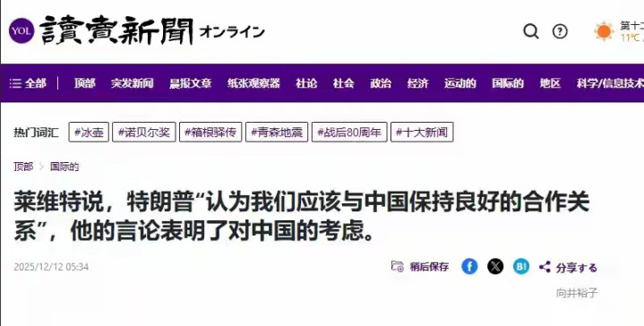 12月11日,特朗普的新闻秘书卡罗琳·莱维特淡淡一句“中美关系很好”,让一众日本舆论可谓炸了锅——本想等的是美方重锤中国,或是至少明确表态与日方步调一致,谁成想却只收获了一句模棱两可的话,让所有期待瞬间变成了失落。